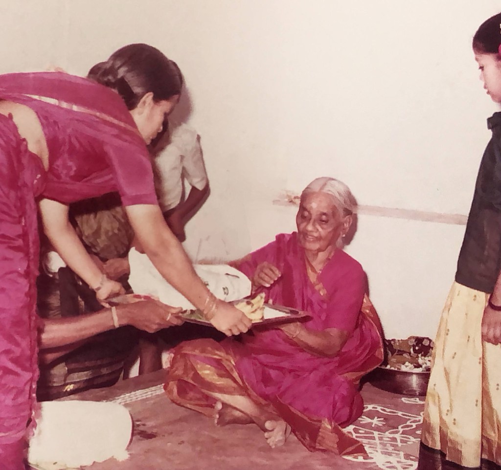 “Paati, Paati, do you remember me?” he asked, stepping forward, his voice trembling. “I’m Guru, Paati,” he whispered, hoping that she would recognize him, would open her eyes and smile the way she always did. But she didn’t respond. Her eyes remained shut, her body unmoving. He stood there, helpless, as his father continued to talk to her daughter. They spoke of the neighbors who brought food, of how poonapaati had always been the one who cooked, who managed everything, but now could barely lift a hand. He could hear the sadness in his father’s voice, the guilt that hung between them like an invisible weight.